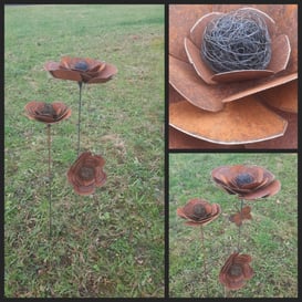 Es ist dem/der Betrachter/in überlassen, ob er/sie nun einen Mohn oder eine Rose sieht…die Blumen aus Blech sind einfach schön und so in einer dreier Gruppe wirken
